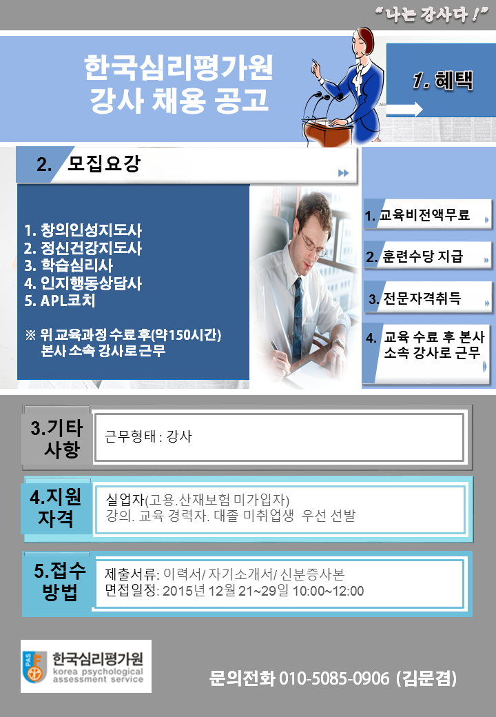 한국심리평가원 강사모집 공고